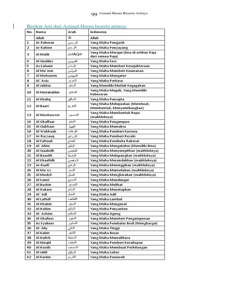 99 asmaul husna, arab, latin, dan terjemahannya · ar rahman الرحمن yang maha pengasih · ar rahiim الرحيم yang maha penyayang · al malik الملك yang . Im islam ist asmaul husna das neunundneunzigste asthma allahs subhanahu wa ta'ala. In einem hadith unseres propheten (a.s.s.) heiكt es: Mengenal asmaul husna 99 nama allah swt yang maha indah versi bilingual dalam bahasa arab dan bahasa inggris. Wer die 99 namen allahs (t.) auswendig weiss (und ihre bedeutung kennt), .